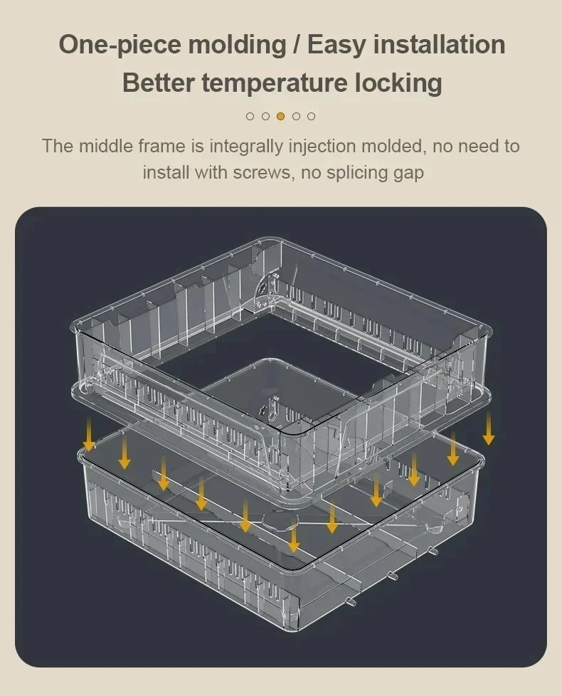 * Châssis détachable : après un cycle d'incubation complet, il y aura des eaux usées, des fragments de coquille d'oeuf et même des excréments à l'intérieur de la machine, le châssis est détachable pour un nettoyage facile.