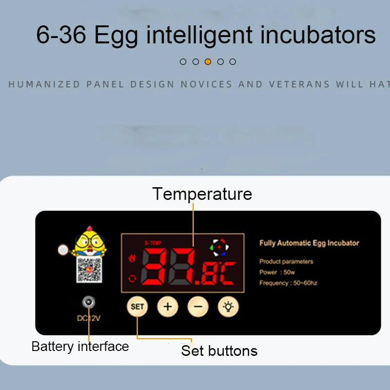 * Affichage d'écran de couleur : améliorez et agrandissez l'affichage d'écran de couleur, vous pouvez voir plus clairement, la machine est contrôle de température entièrement automatique, et peut éclore sans opération fréquente.