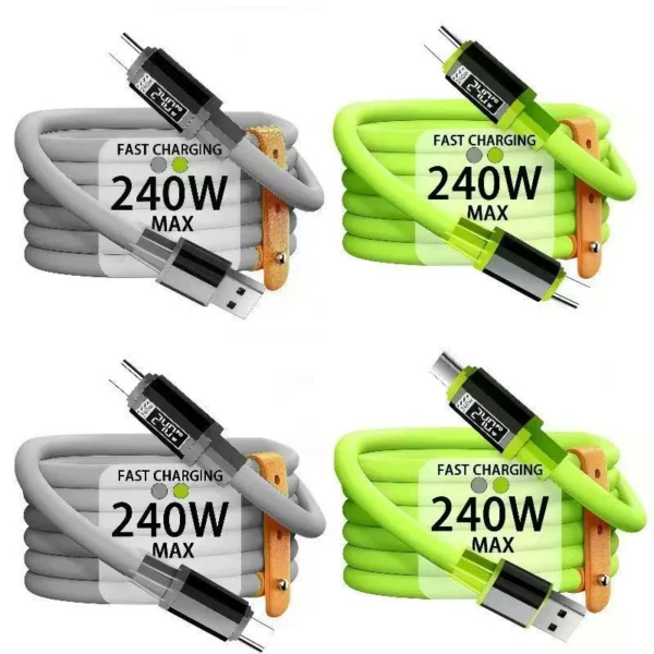 Câble de charge haute puissance épais avec charge ultra-rapide de 240 W, compatible avec les téléphones Apple 16, Huawei, Vivo et Xiaomi.