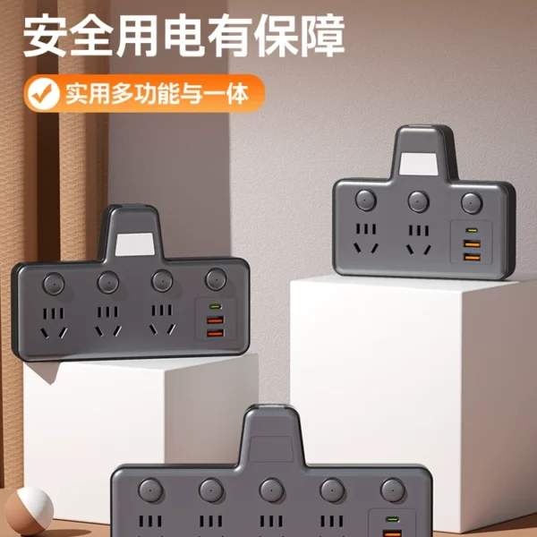 Adaptateur multiprise Gong Zheng Niu en cuivre pur – avec ports USB, compact et multifonction.