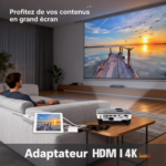 Grâce à sa conception compacte, son boîtier robuste et sa connectique fiable (HDMI + port de charge), vous pouvez recharger votre appareil tout en projetant — idéal pour les présentations longues ou les soirées cinéma à domicile.