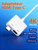 Adaptateur HDMI pour iPhone – 4K/1080p, compatible iPhone 16/15/14/13 & iPad