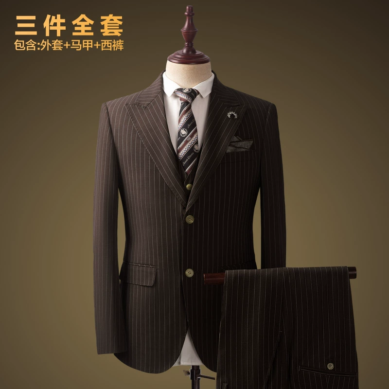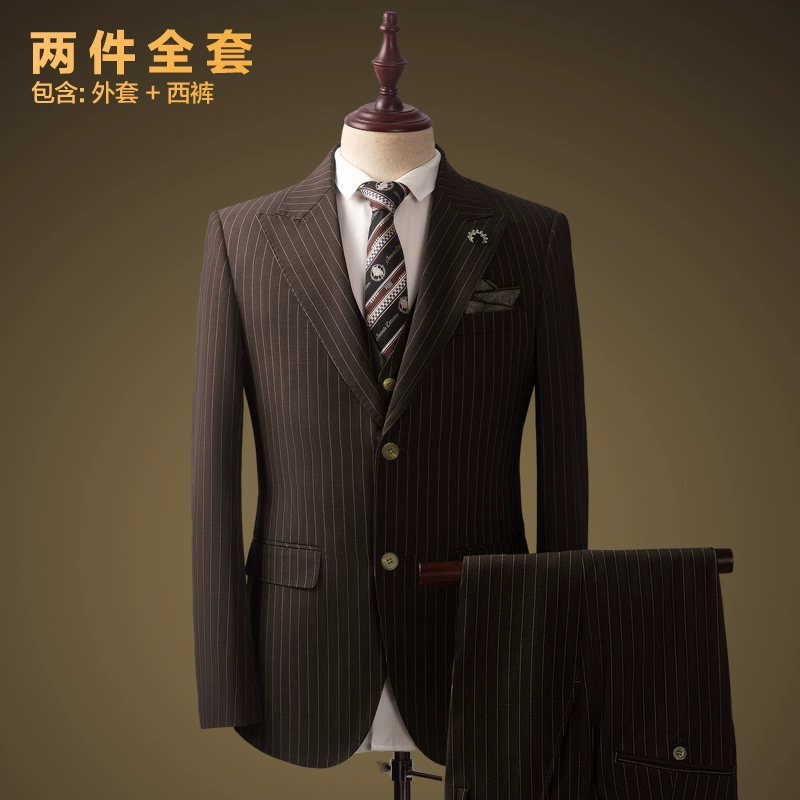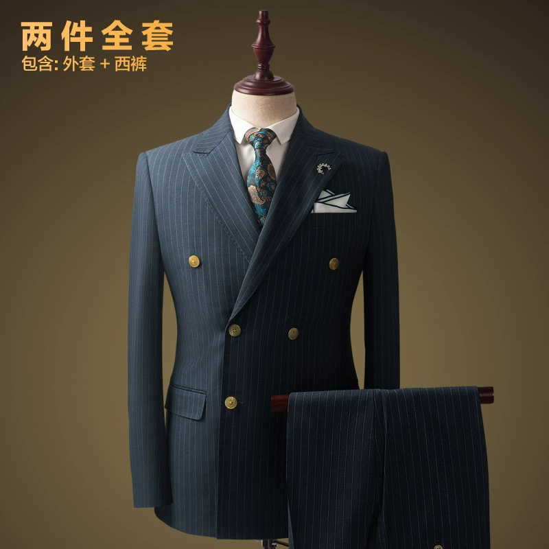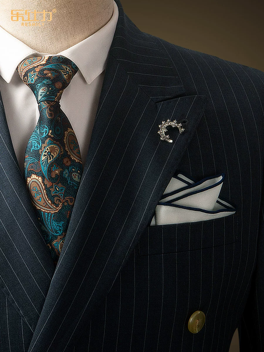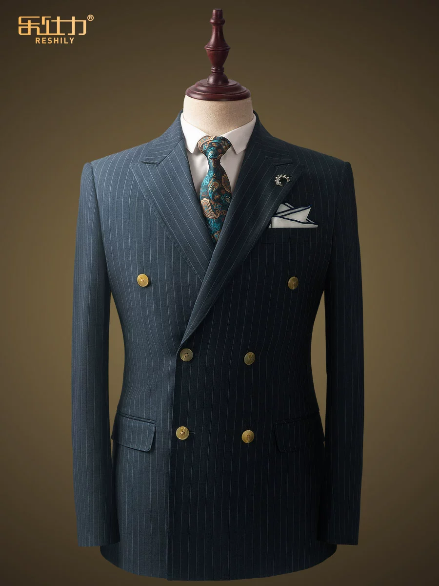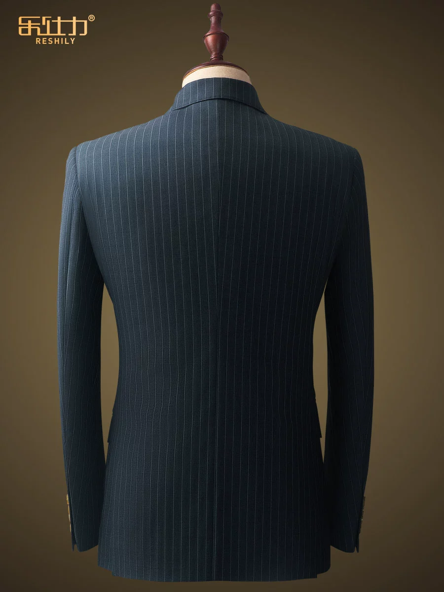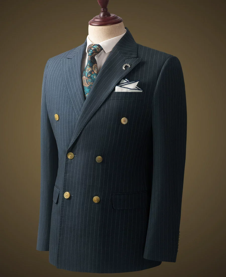 Costume Homme en Laine – Ensemble Élégant Gris Bleu à Rayures, Coupe Slim, Haut de Gamme, Idéal pour Mariage, Cérémonie ou Tenue de Bureau