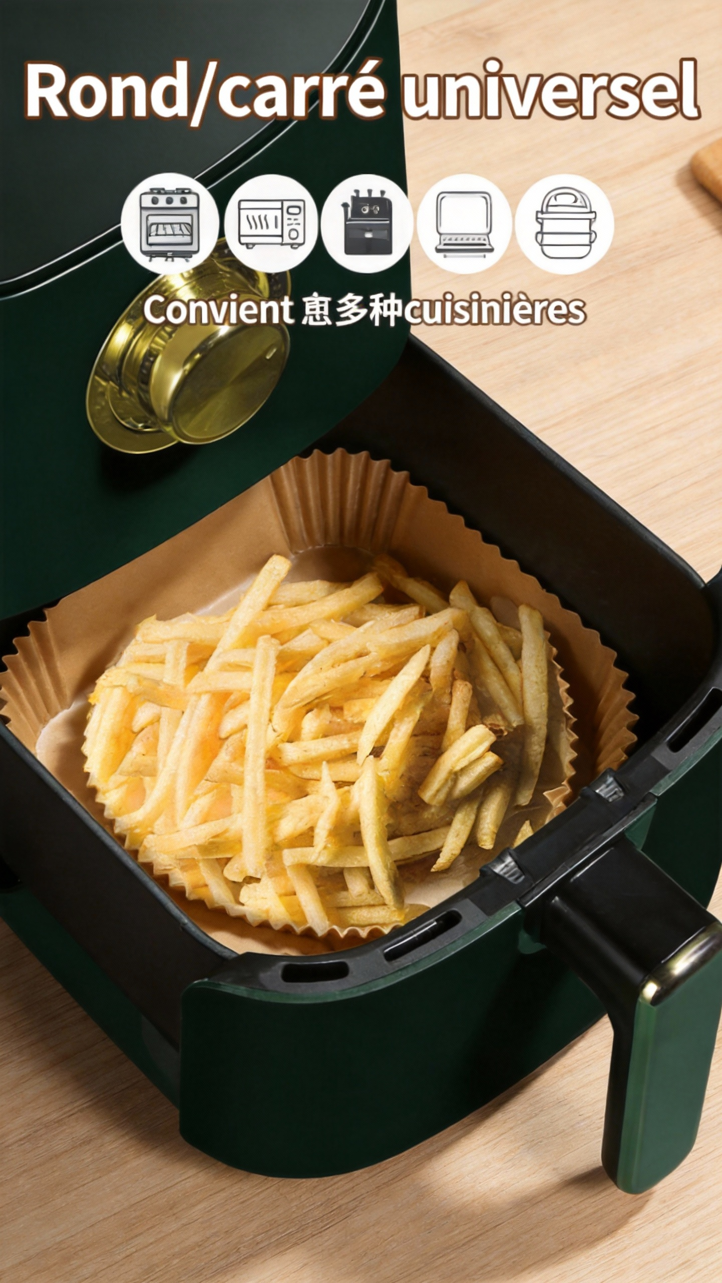 Papier sulfurisé pour friteuse à air, rond/carré, silicone absorbant, idéal pour cuisson et grill